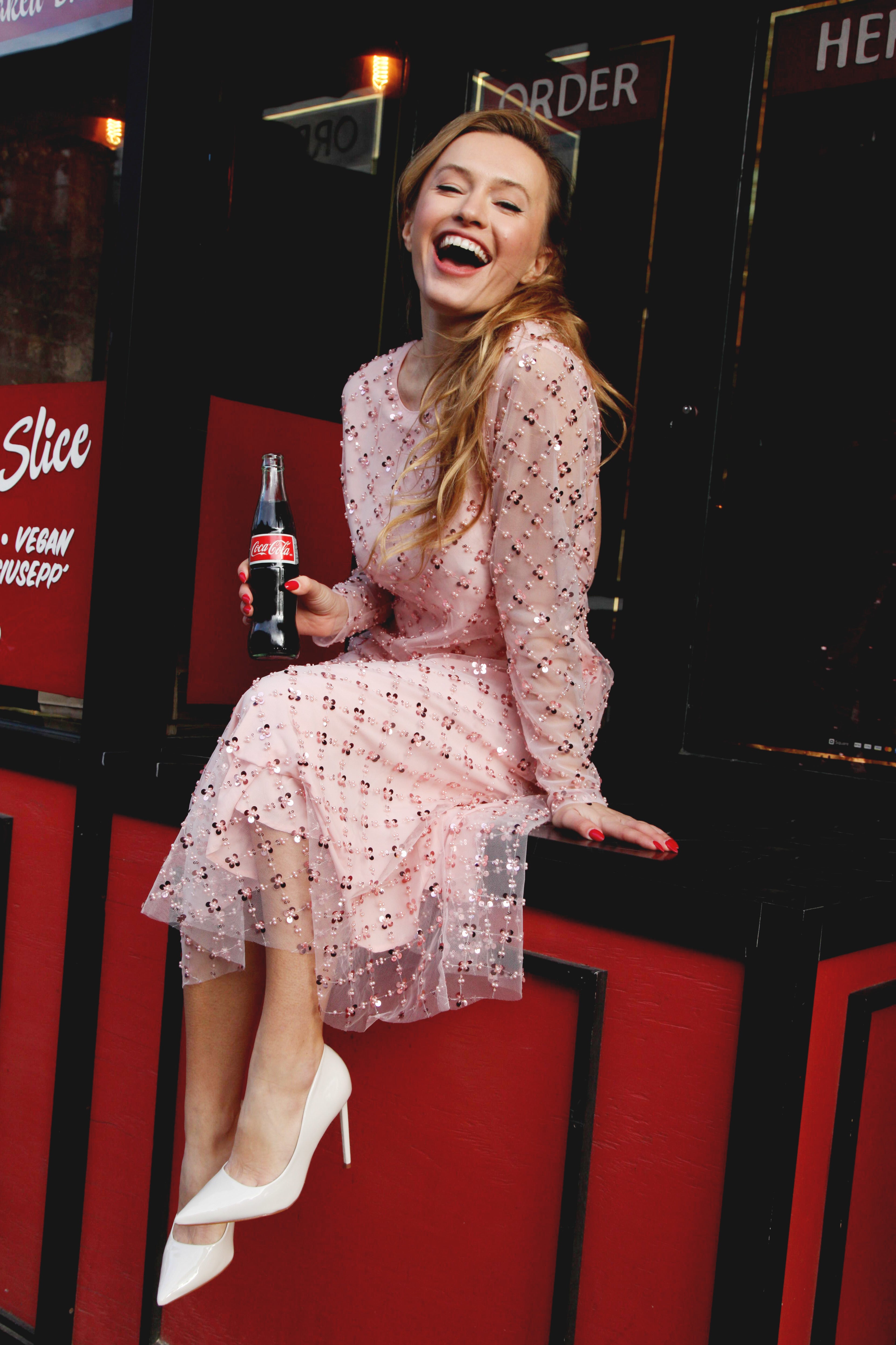 A-line embroidered sequin Chiffon dress , round neck, backless opening with velvet Tie. Dress is fully lined .