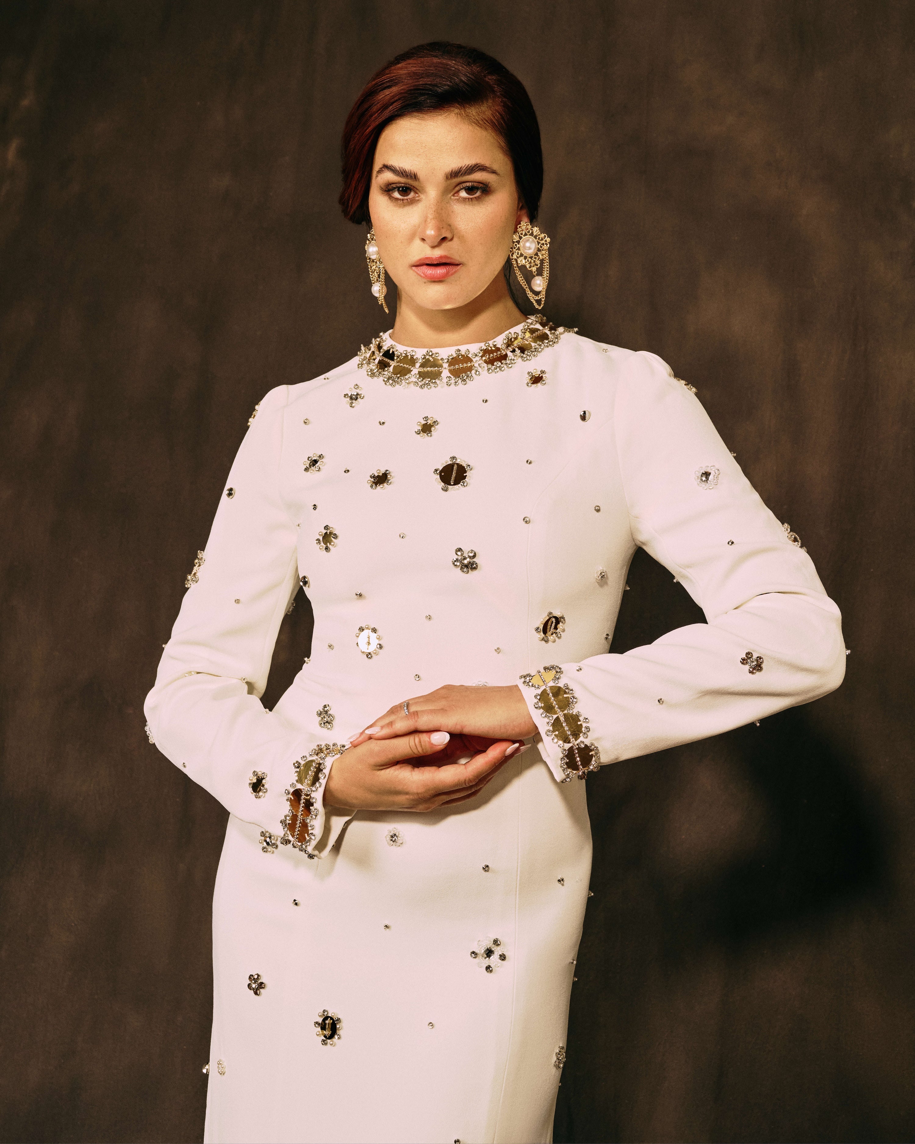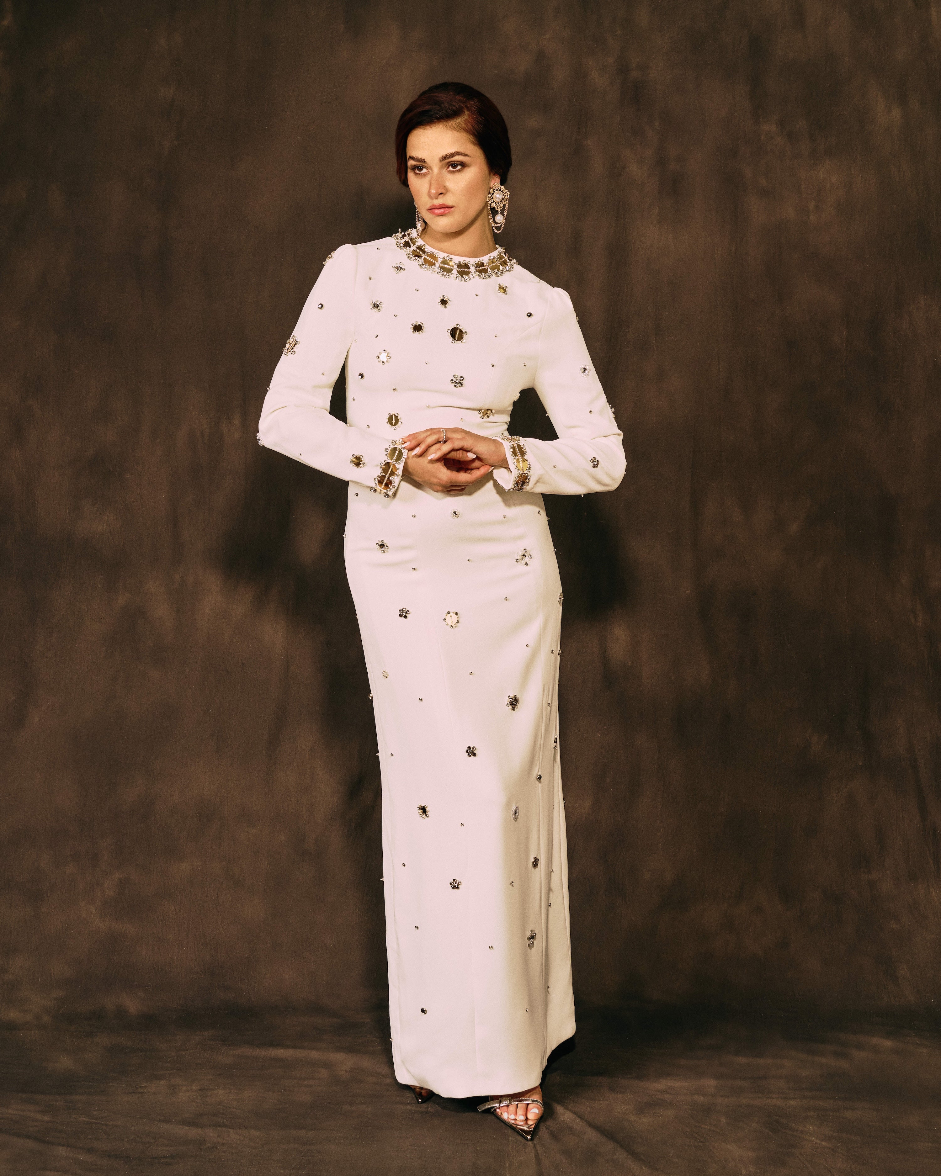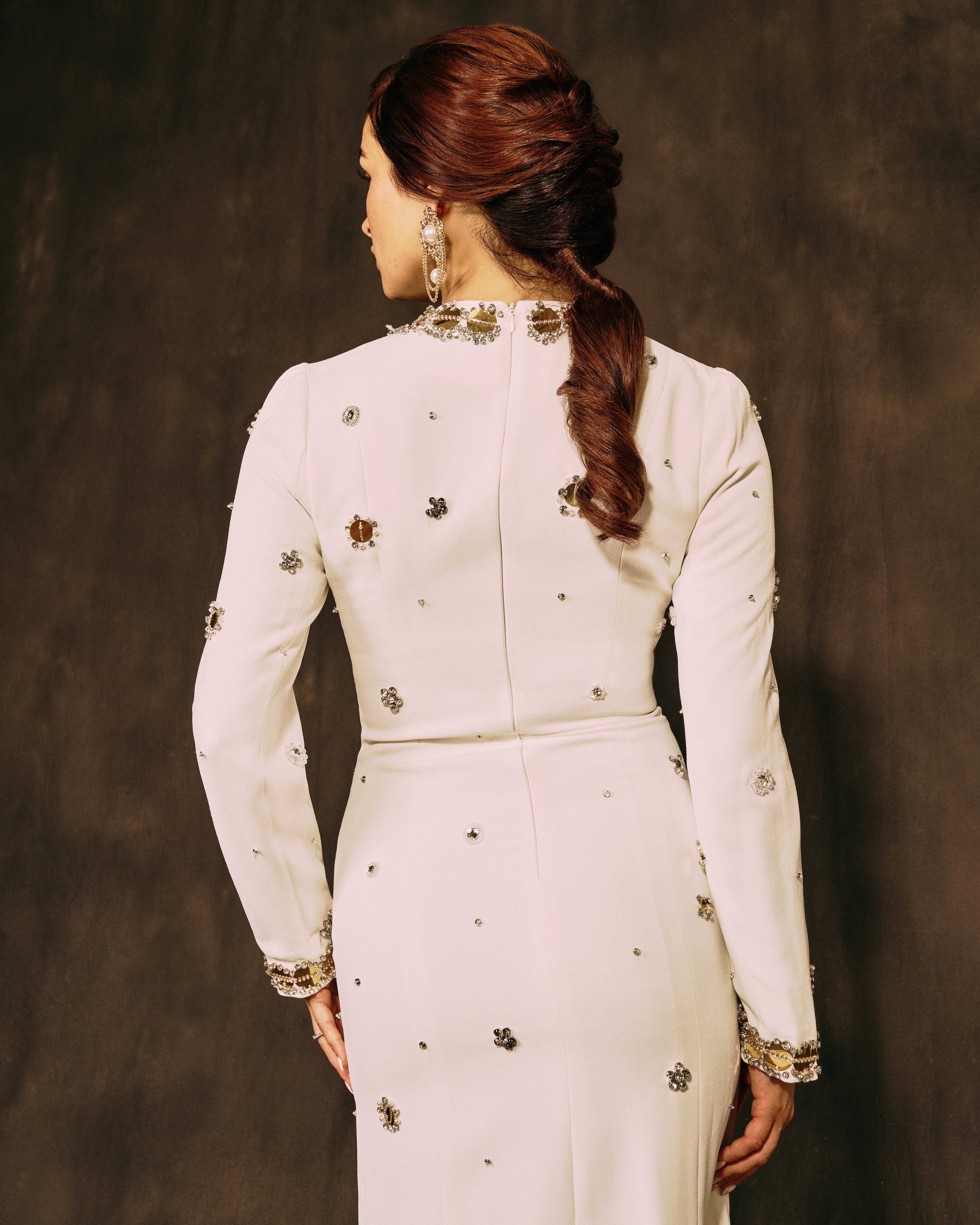 iInspired by Audrey Hepburn’s iconic style, AUDERY captures simplicity and timeless elegance in a modest maxi dress designed to make you proud every time you look back at your pictures. Crafted from body-hugging fabric, it gracefully contours your silhouette, while the subtle, light neckline embellishment adds a refined touch of sophistication. This exquisite combination of classic cuts and modern design creates a versatile and elegant look perfect for the discerning bride who values understated glamour. With AUDERY, experience the perfect balance of grace and contemporary style that will leave a lasting impression.